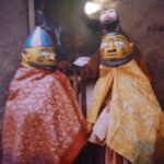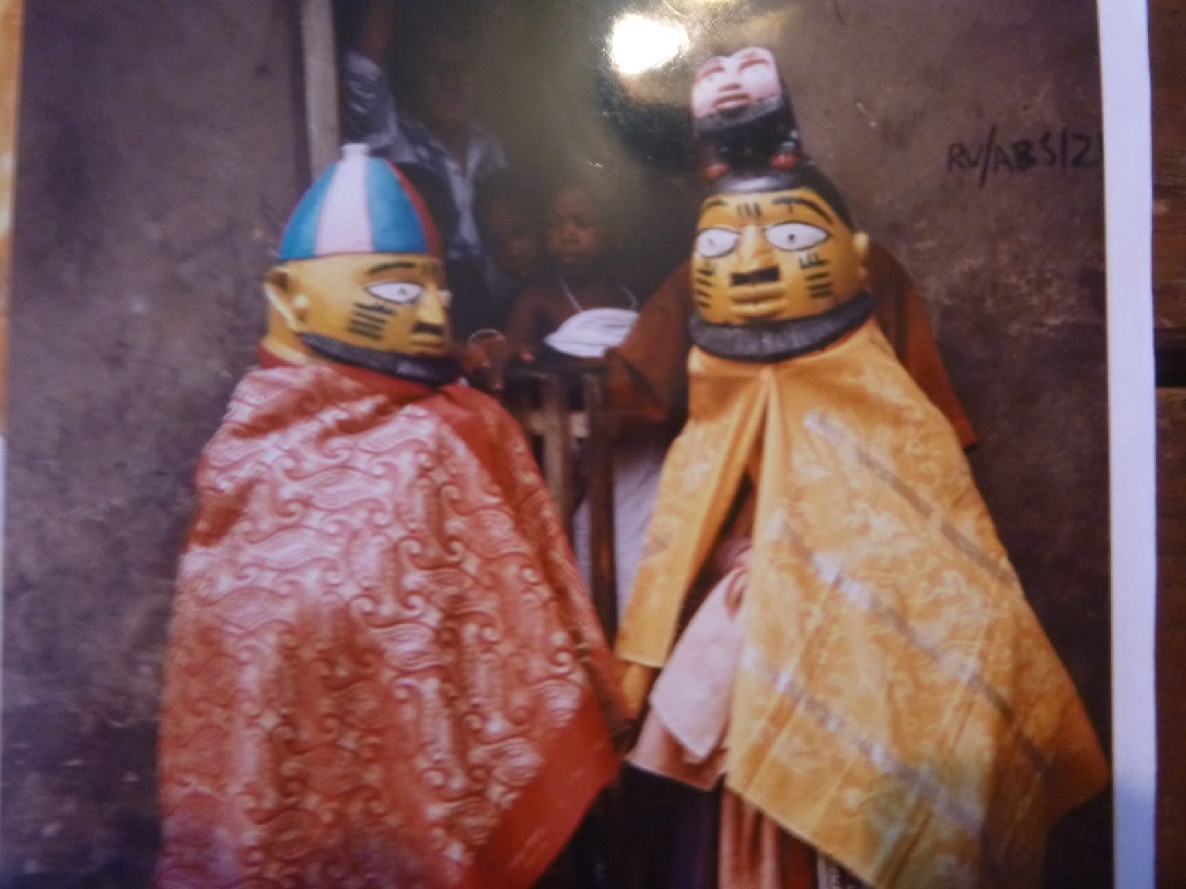 Descendentes daqueles que propiciam a máscara de madeira para receber todas as bênçãos da vida.